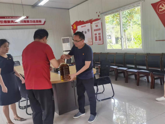 慰问期间,工会主席胡红枫同志与支部书记李君权同志、公司总经理明媚同志,对三名退伍军人表示感谢,感谢他们为国家作出的贡献,并送上慰问品。胡红枫同志由衷感叹“他们曾经是军人,但回到平凡的工作岗位上后,依旧发扬军人吃苦耐劳的精神,在平凡的工作岗位上,勤勤恳恳、甘于奉献,我们应该向他们学习”。
