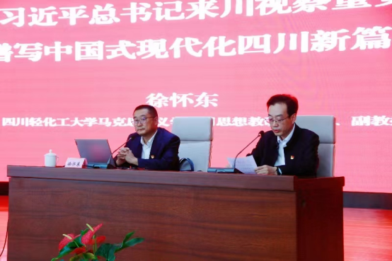2023年10月12日下午,四川自贡汇东发展股份有限公司党委召开了“学习贯彻习近平来川视察重要指示精神,奋力谱写中国式现代化四川新篇章”主题宣讲会。四川轻化工大学马克思主义学院徐怀东副教授做主题宣讲。