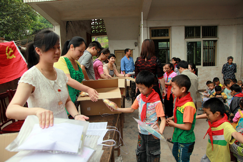 当天清晨,受公司领导委托,公司党委委员、纪委书记、总会计师吴希尧带领公司党员、团员和青年志愿者一行8人,带着公司全体员工对富顺兜山镇瓦窑村的留守儿童和贫困儿童的祝福,来到兜山镇村小对150余名留守儿童和贫困儿童进行慰问,为他们送上节日礼物和可口的糕点。并现场为孩子们放映了动画影片《冰河世纪》,还与孩子们一起跳绳、打球联欢起来。孩子们捧着学习用具,吃着可口的糕点,一张张可爱而淳朴的脸上写满了感谢与喜悦,纷纷表示一定好好学习,不辜负大家的期望,为实现中华名族的伟大复习的“中国梦”而奋斗。
