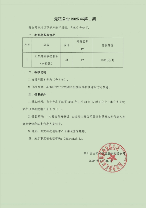 1.报名时间:自公告之日起至2025年1月23日17时0分止(本公告自投放之日起有效期5个工作日)。