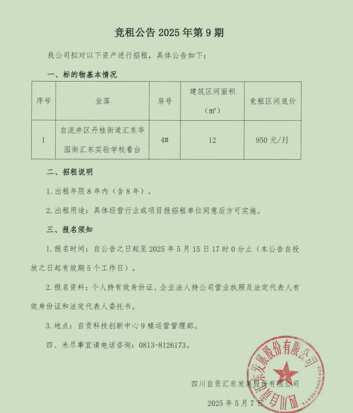 1.报名时间:自公告之日起至2025年5月15日17时0分止(本公告自投放之日起有效期5个工作日)。