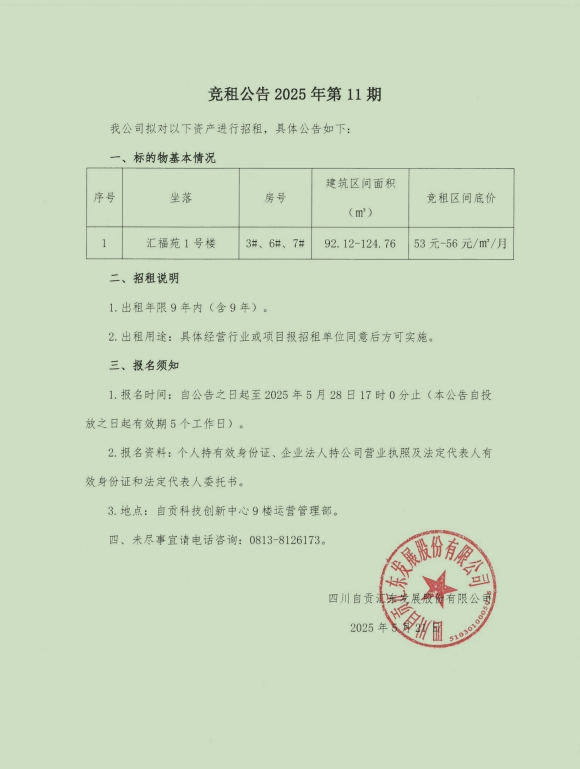 竞租公告2025年第11期