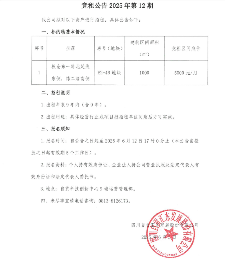 竞租公告2025年第12期