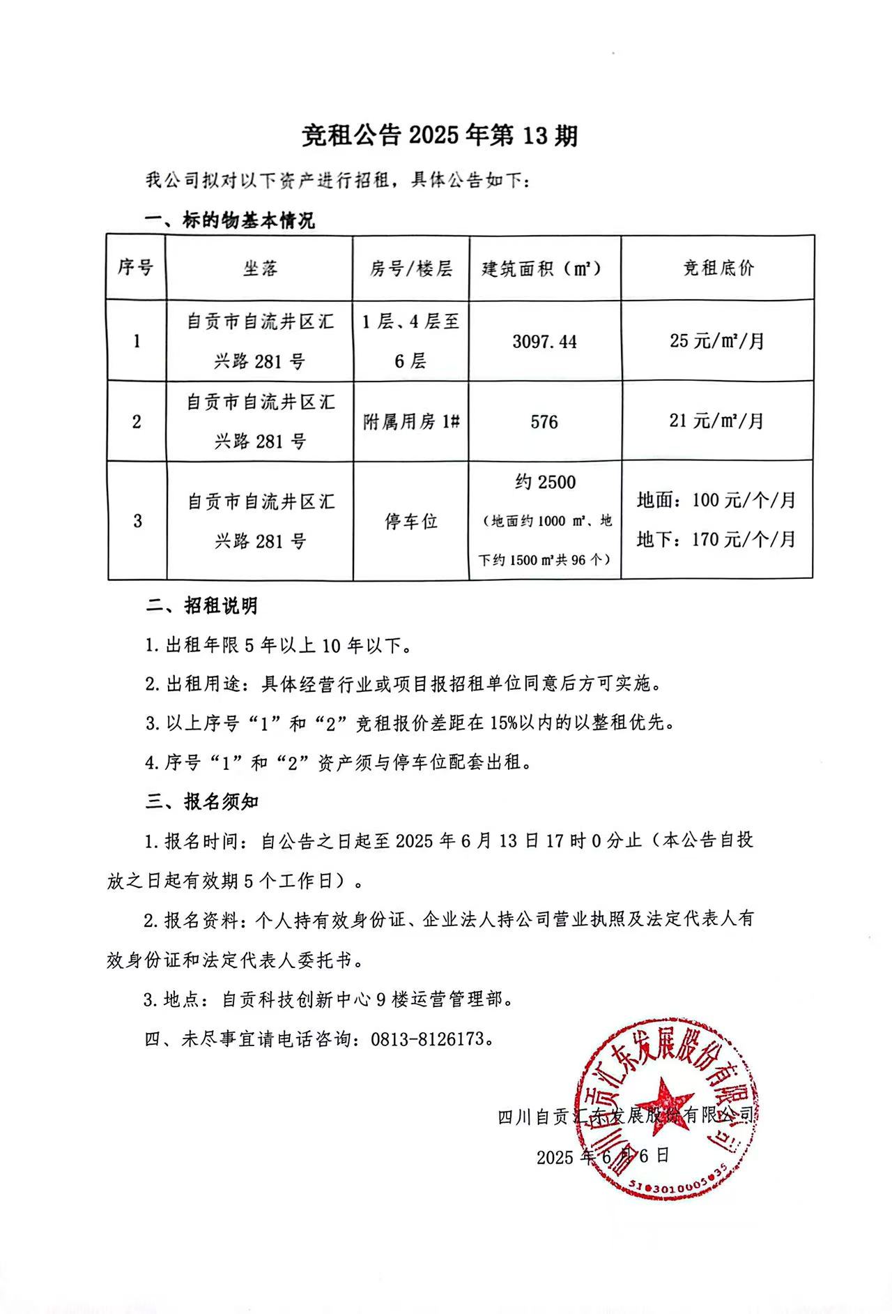 1 | 自贡市自流井区汇兴路281号 | 1层、4层至6层 | 3097.44 | 25元/㎡/月 |