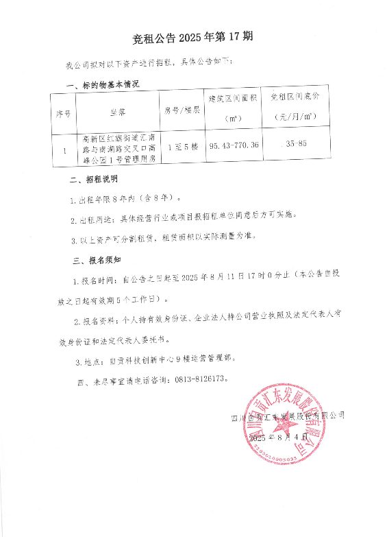1.报名时间:自公告之日起至2025年8月11日17时0分止(本公告自投放之日起有效期5个工作日)。