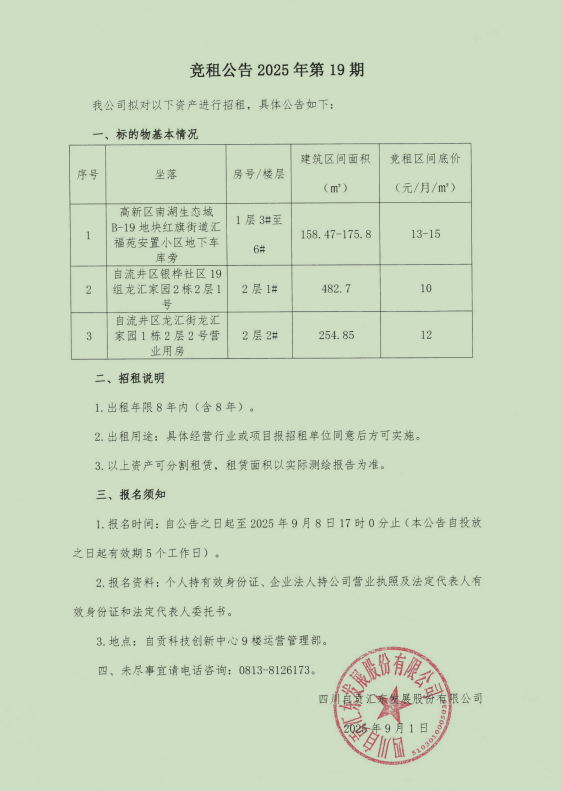 竞租公告2025年第19期