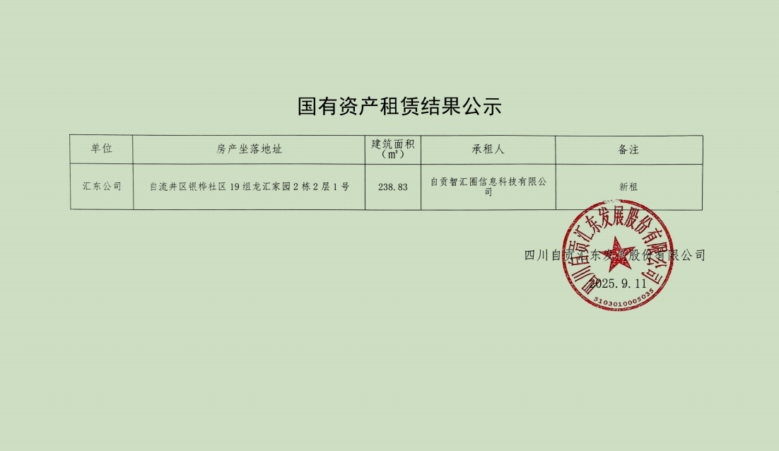 国有资产租赁结果公示