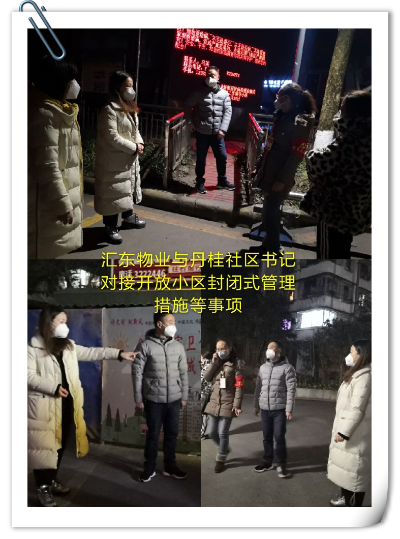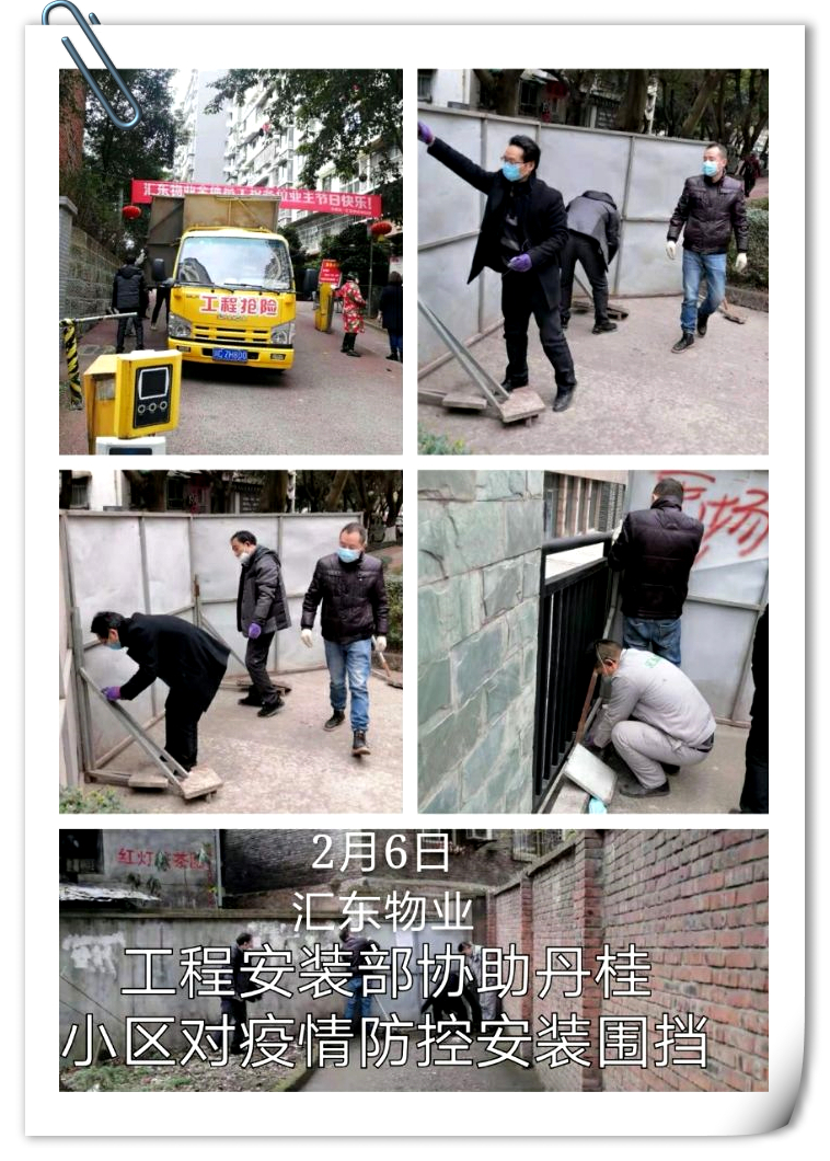 面对疫情,汇东物业迎难而上,做到疫情防控与物管服务“两不误”,全司所辖的25个小区1000 余名工作人员牺牲春节假期不畏严寒坚守岗位,千方百计克服防疫物资不足、工作任务繁重、防护风险大等各种困难,坚决落实“人员排查一个不漏”、“环境消杀一个不落”、“封闭管理一个不缺”等防控要求,充分发挥“红色物业”优势,努力践行国企责任,积极守护业主们的健康防线。