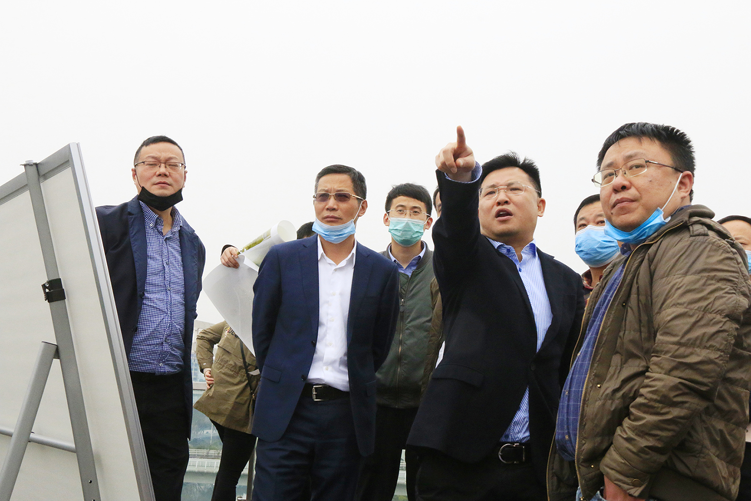 公司董事长沈才松和总经理邹阳陪同调研并汇报了项目推进情况。
