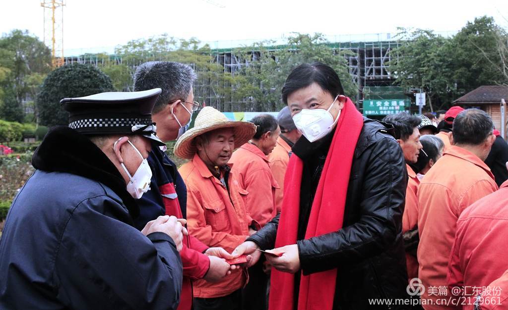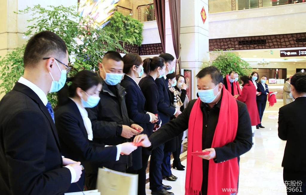 1月25日大年初一早上,公司总经理邹阳、党委副书记李冰一行带着新春佳节的祝福,先后来到汇东大酒店、汇东物业、汇东园林公司看望慰问节日坚守岗位的一线员工,向他们赠送了春节红包,并嘱咐他们在疫情期间坚守岗位的同时一定要做好自我防护,确保身体健康!