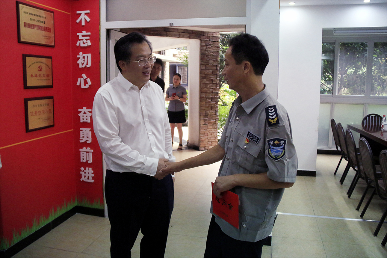 在慰问结束之后,临行前范波书记与公司董事长沈才松、汇东物业总经理钟立智进行了交谈,范波书记充分肯定了汇东物业公司在抗击疫情的过程中所作出的突出贡献以及在创建红色物业过程中所取得的突出成就,同时勉励汇东物业以及整个汇东股份公司要不忘初心、牢记使命,砥砺前行,再创佳绩!