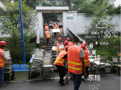 4.9舍:原有桌椅、床及其他杂物拆除清运、卫生打扫完成70%,共计70间。