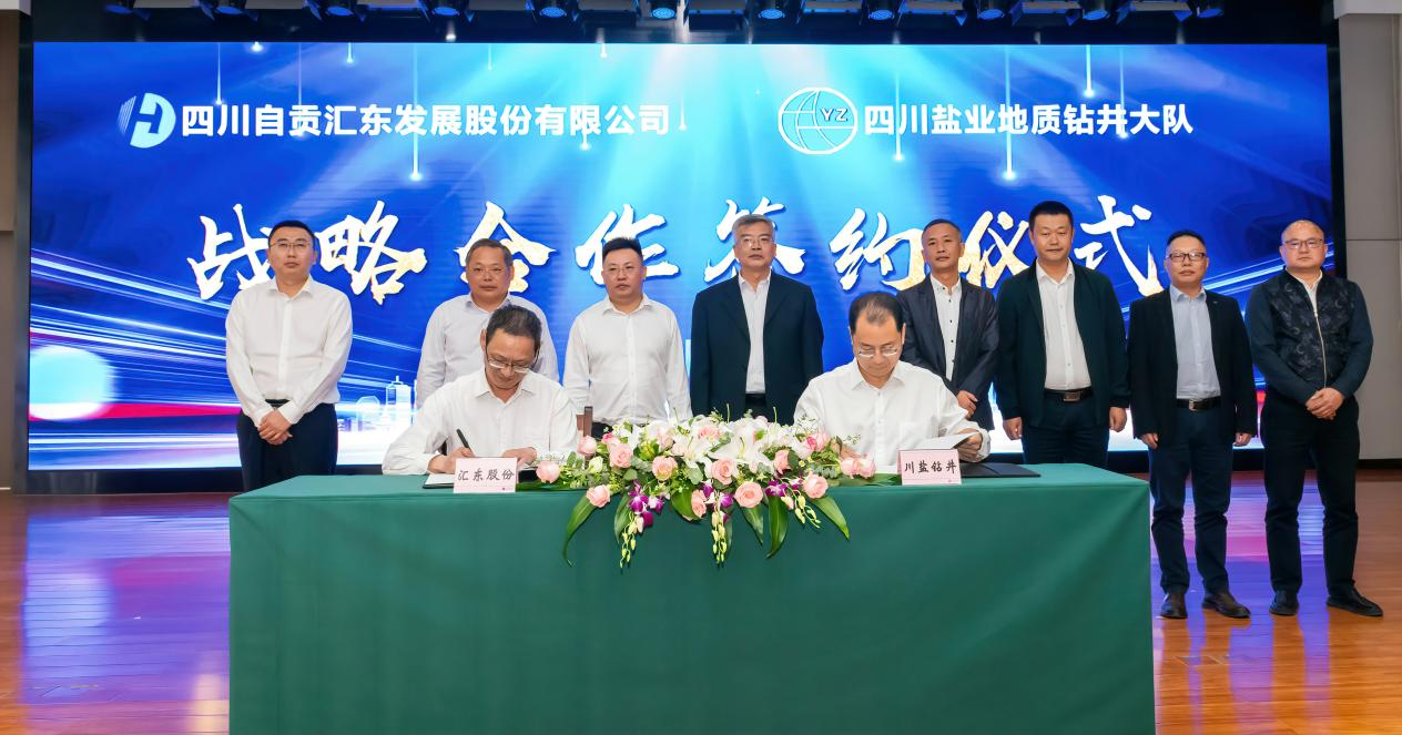 坚守使命初心,不忘责任担当。10月20日,四川自贡汇东发展股份有限公司(以下简称“汇东股份”)与四川盐业地质钻井大队(以下简称“川盐钻井”)签署战略合作协议,“优势互补,共同发展”,用实际行动深入践行党的二十大工作报告思想精髓。汇东股份党委书记、董事长沈才松,川盐钻井党委书记、大队长郑勇出席签约仪式并讲话。汇东股份总会计师吴希尧与川盐钻井副大队长范光洪代表双方签署协议。