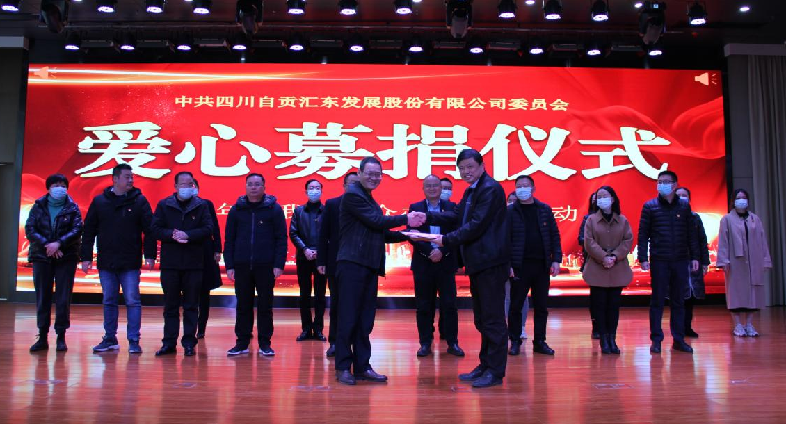 募捐款由中共汇东发展股份有限公司委员会委员、总会计师吴希尧交接给自贡汇东建设工程有限责任公司董事长殷捷。交接过程各支部代表进行了见证。