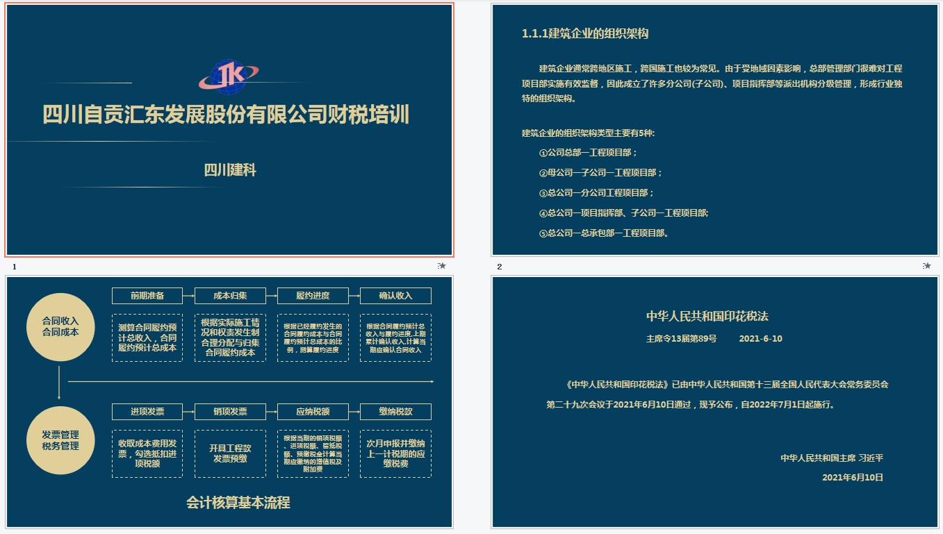为了让集团财务工作人员强化了解税收与财务管理相关知识,此次培训采用集中授课方式进行。现场,邹毛珍老师讲解了建筑企业的组织架构;成本类重点科目解析与案例;费用、建设合同、合同成本处理与案例;中华人民共和国印花税法相关知识。