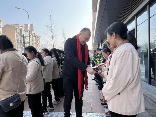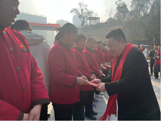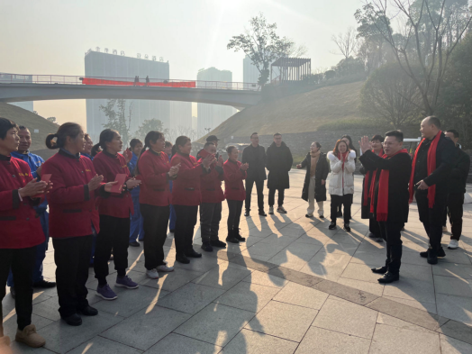 沈才松谈到,今天是大年初一,各位依然坚守一线,服务群众。有在点点星光中忙碌的园林工人,在小区楼宇间穿梭的物业工作者,在璀璨霓虹下张罗的酒店服务人员等等,公司党委始终没有忘记你们,感谢你们坚守岗位、默默付出、辛勤劳动,大家都是城市的守护者,你们是最可爱、最可敬的人!