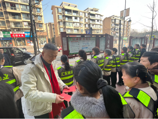 辰龙贺岁,辞旧迎新。2月10日,农历大年初一早上,汇东股份公司党委书记、董事长沈才松带队,先后到汇东大酒店、高峰公园、卧龙湖一期等地,为坚守在工作岗位上的职工们送去了新春的祝福和慰问。