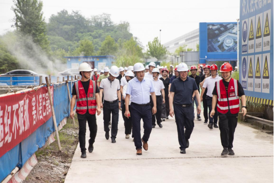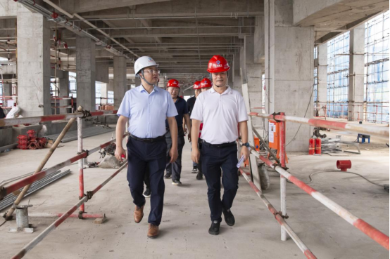 ▲覃建波同志深入低碳绿色产业园——南岸之芯科创项目(一期)施工现场,实地了解现场的安全管理和文明施工情况。