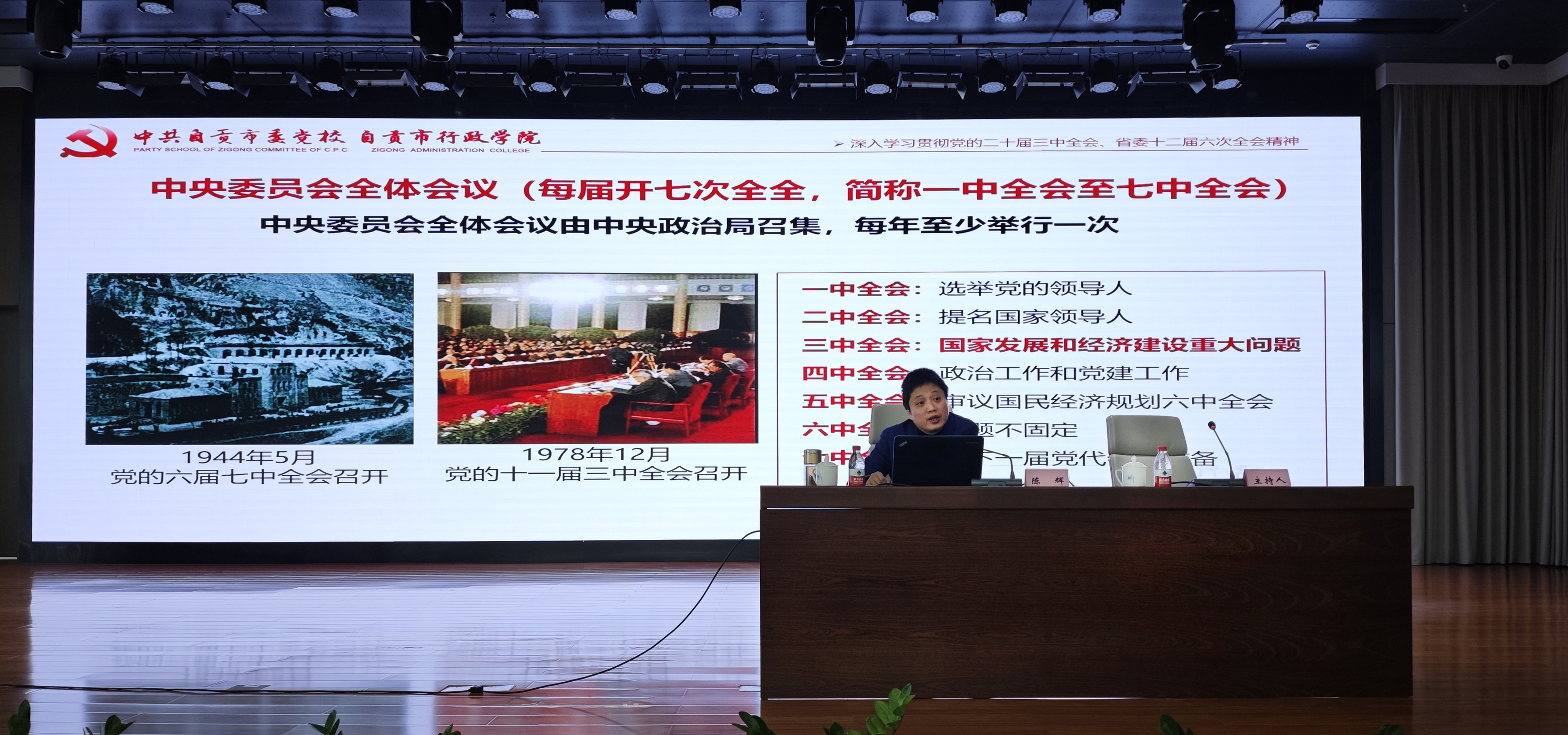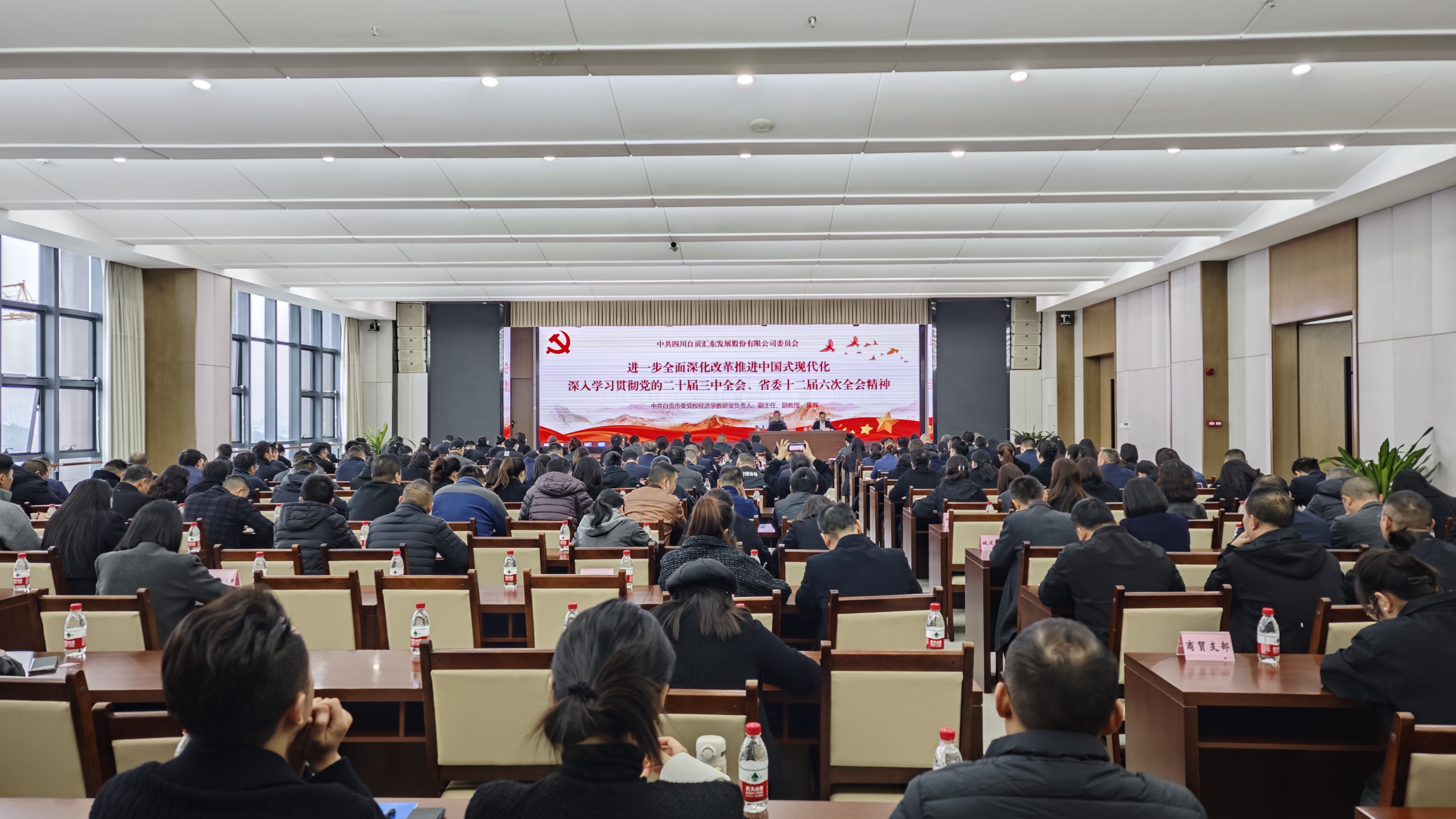 ? ? 11月21日,汇东股份公司学习贯彻党的二十届三中全会和省委十二届六次全会精神宣讲会在公司本部1202会议室举行。宣讲会邀请了自贡市委党校经济学教研室负责人、副主任、副教授陈辉进行宣讲报告,全体参与同志端坐静听、深入领会,在公司掀起了轰轰烈烈的学习热潮。