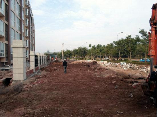 板仓五期安置房土建工程完工后,汇东园林绿化公司于10月30日进场施工。公司工程部经过前期部署,将在11月底完成整个平场工作,预计年底完成整个安置房的绿化工作。