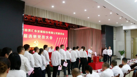 ? ? 4月11日下午,中共四川自贡汇东发展股份有限公司委员会(以下简称公司党委)召开党委换届选举党员大会,会议选举产生了公司新一届党委班子,圆满完成了换届选举工作。会议由公司党委书记、董事长沈才松主持,市国资委党建工作科副科长谢欢到会指导,245名党员(含预备党员)参加会议。