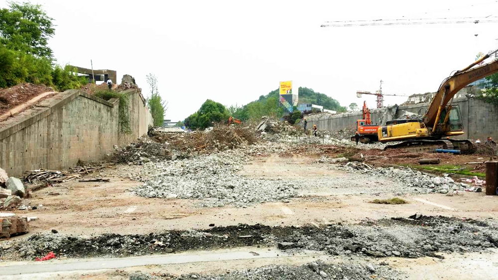南湖公园西大门地道桥本周已破碎完成,对规划西大门桩基验线。