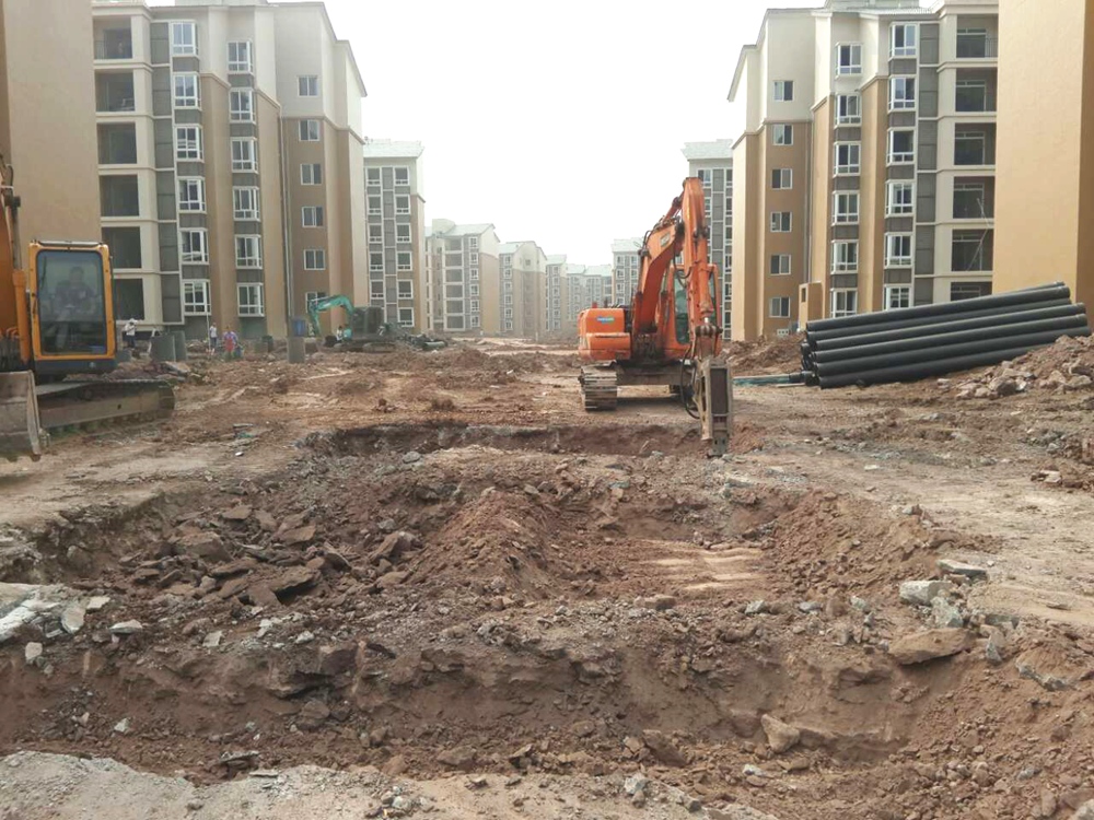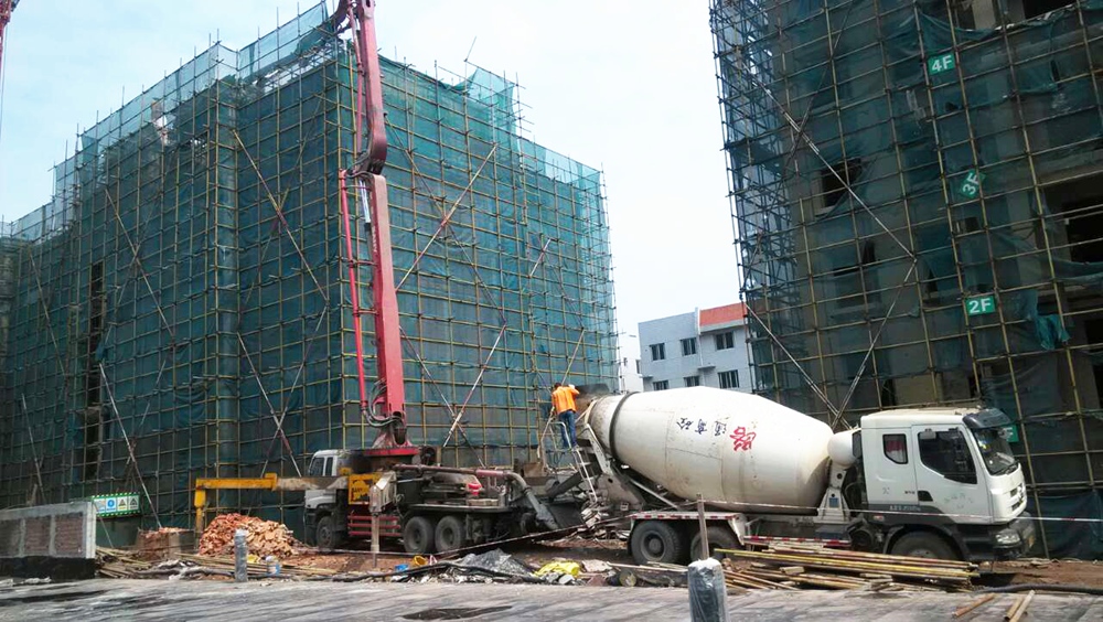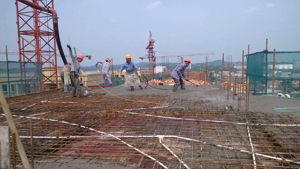 大西洋焊接产业园动迁安置房八号楼,屋面封顶混凝土浇筑作业进行中。