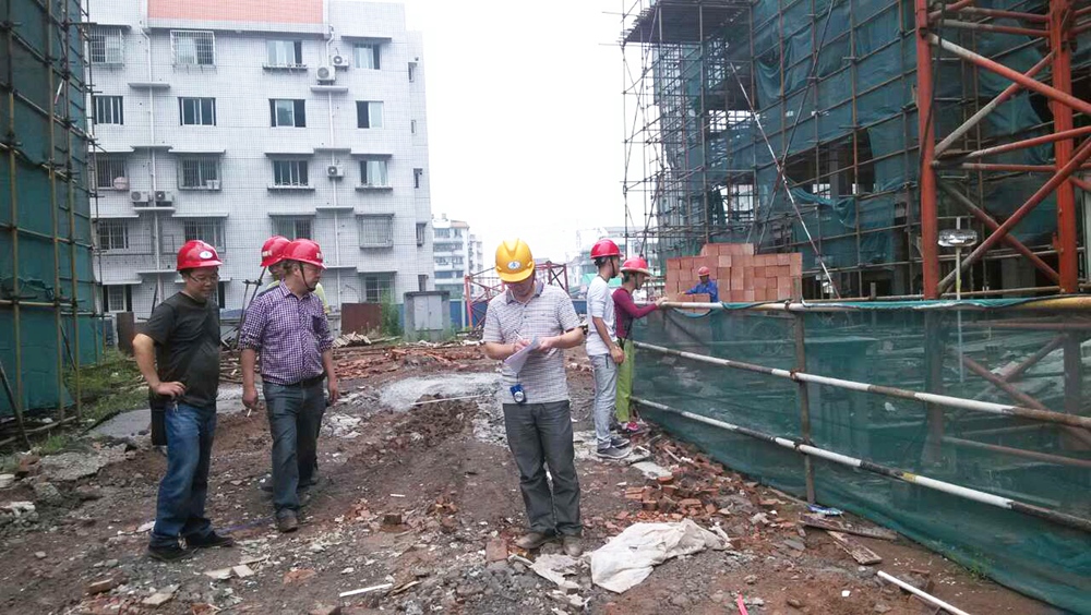 由监理、甲方、施工单位组成的现场安全联合巡视检查组,正在大西洋焊接产业园动迁安置房现场,进行现场安全巡视检查。