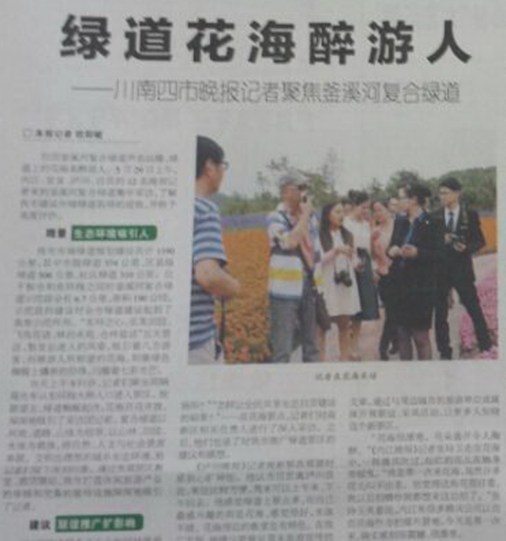 自贡釜溪河复合绿道名声远播,绿道上的花海美醉游人。5月29日上午,内江、宜宾、泸州、自贡的12名晚报记者来到釜溪河复合绿道集中采访,了解我市建设市域绿道取得的成效,并给予高度评价。
