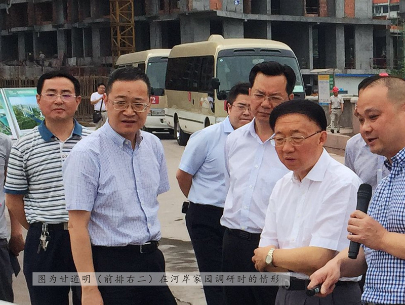 省委省政府决策咨询委员会主任甘道明一行 到公司代建项目南岸科技新区、河岸家园调研