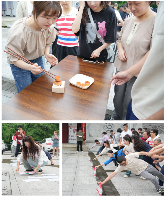 ? ?“月饼叠叠”考验传递与搭建技巧,“玉兔送月”靠身体协作运瑜伽球,“水果消消”拼记忆与观察,“水中捞月”借长杆协作取水,趣味拔河环节更是点燃全场热情……传统文化体验与趣味互动模式融合下,各队参赛职工火力全开,风采尽显。