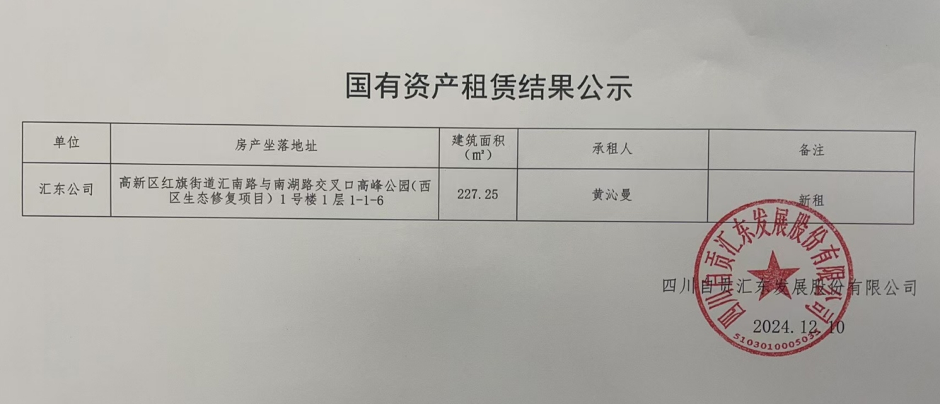 国有资产租赁结果公示