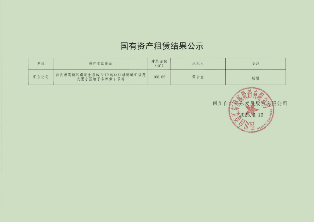 四川自贡汇东发展股份有限公司