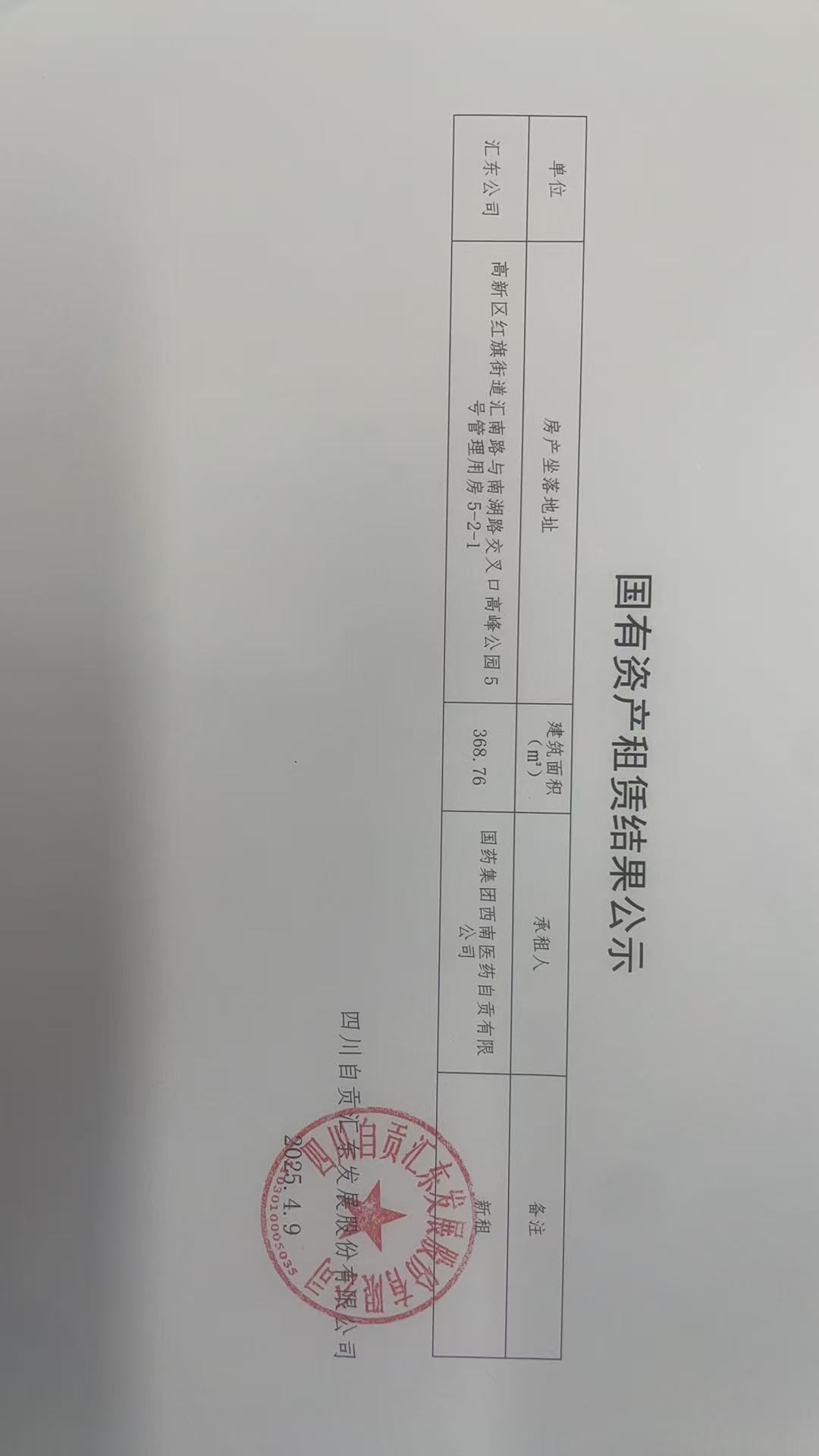 国有资产租赁结果公示
