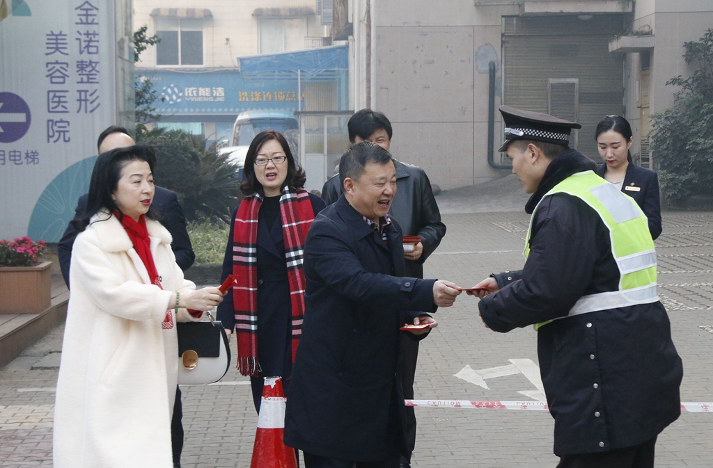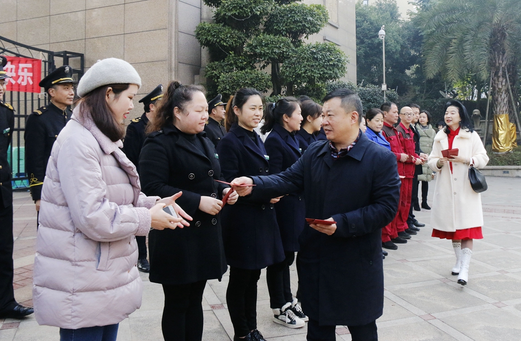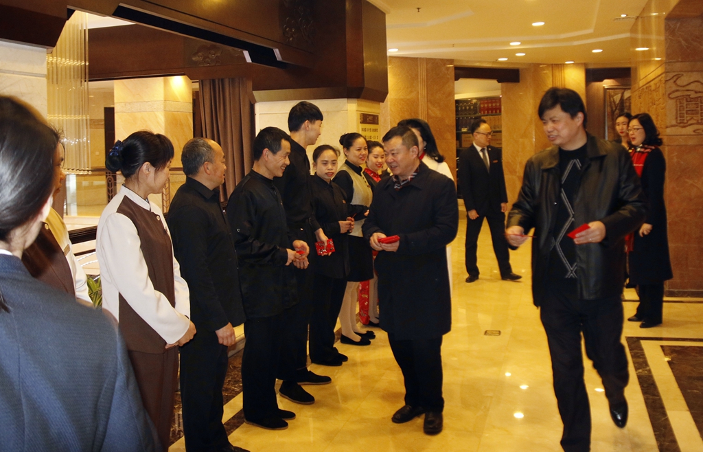2月5日是2019年新年的第一天,一大早,公司总经理邹阳、党委副书记李冰、副总经理殷捷,先后来到汇东大酒店、汇东物业、汇东园林公司,看望慰问节日坚守岗位的一线员工,向他们致以新春的祝福。