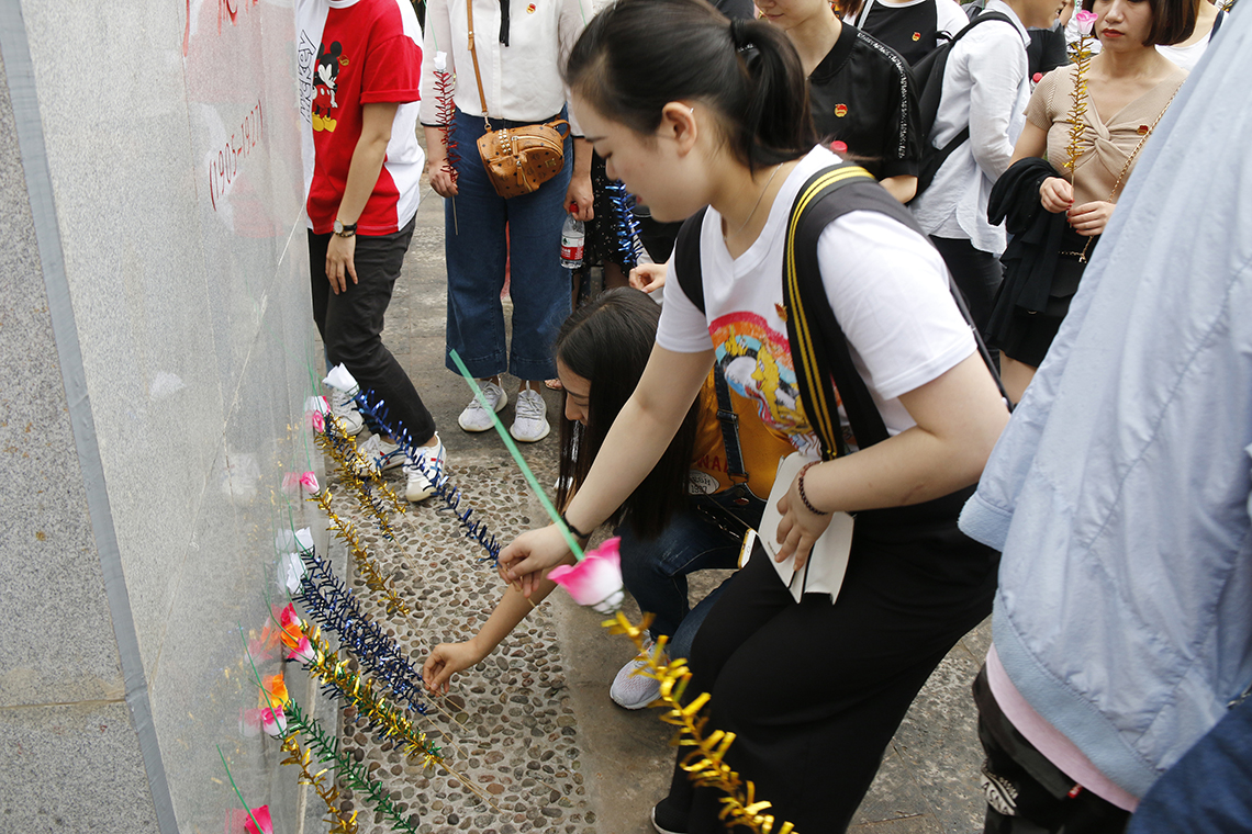 在参观学习完之后,大家前往卢德铭革命烈士纪念碑广场,集中在鲜红的团旗和庄严的誓词前,全体团员青年们肃穆而立,手举右手,重温了入团誓词,然后向革命烈士敬献了花束,上了一场生动的“红色教育”课。