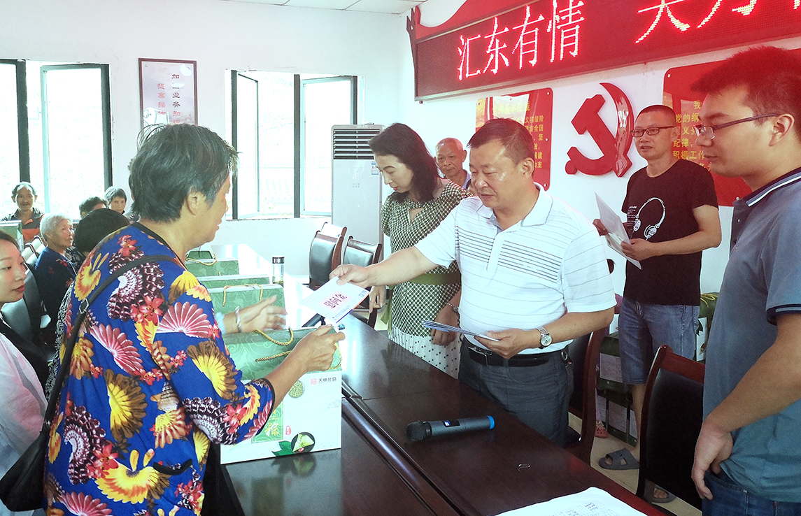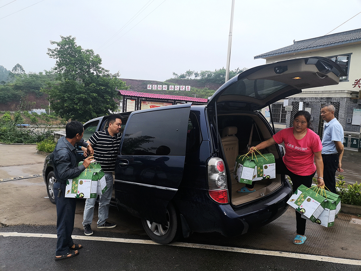 6月23日上午10时,刚从贡井开完会回来的四川自贡汇东发展股份有限公司党委副书记、副董事长、总经理邹阳,在党委副书记李冰,党群工作部、办公室负责人的陪同下,驱车来到公司脱贫攻坚结对帮扶单位大安区牛佛镇关刀村,为该村79家贫困户以及公司结对帮扶的5家贫困户送上了天悦香粽和慰问金,祝福大家端午节吉祥安康。