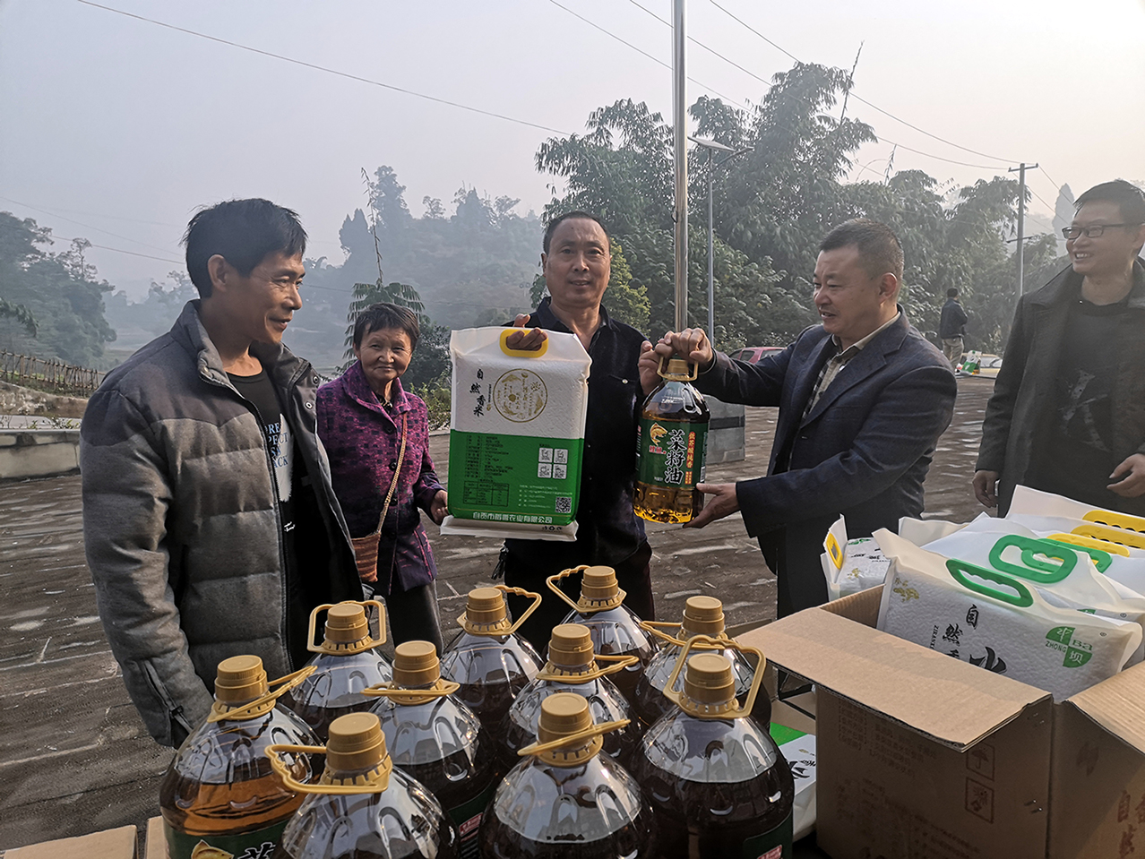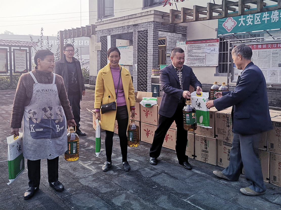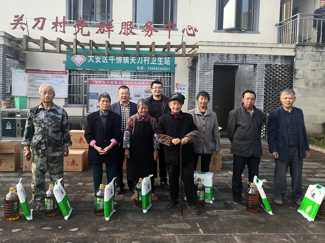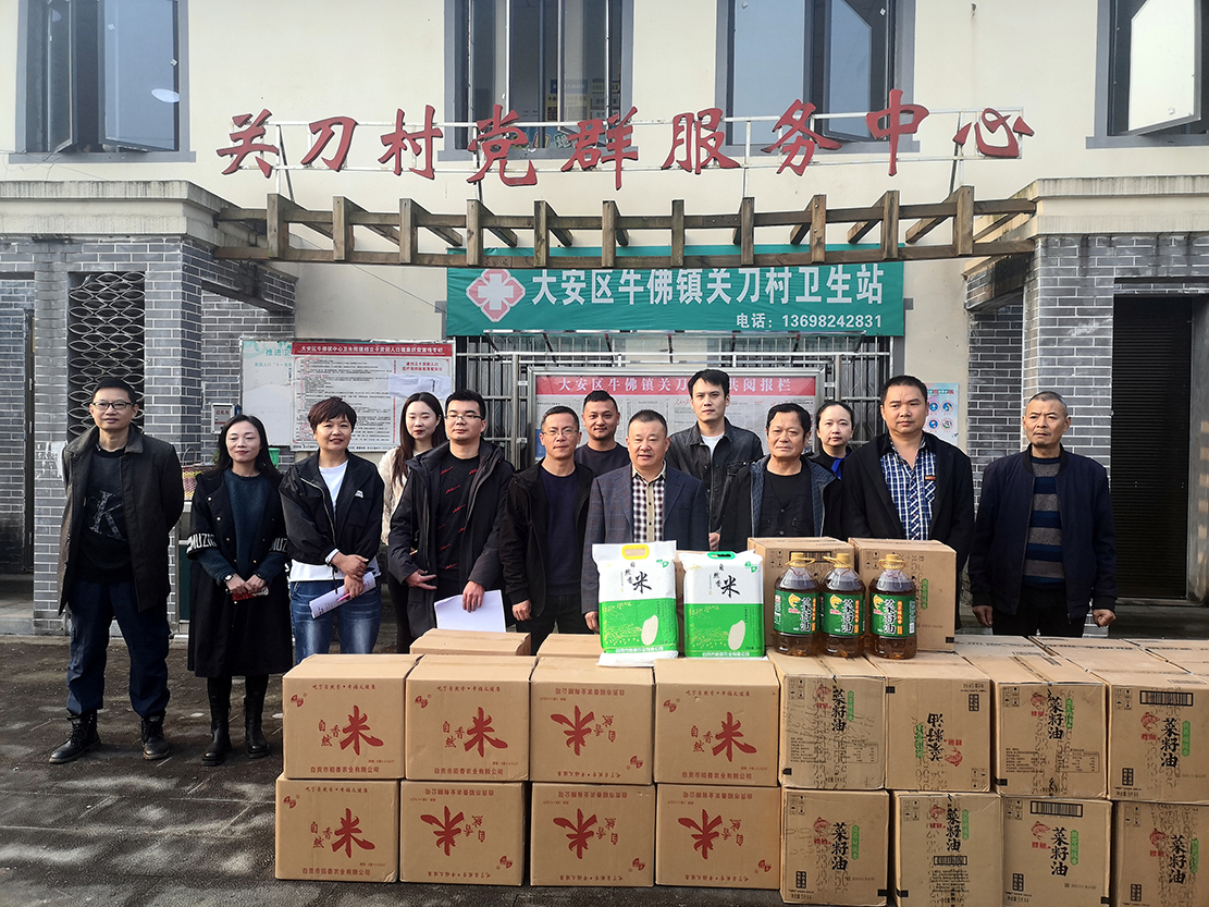 11月16日一大早,公司党委副书记、总经理邹阳在党群工作部、办公室工作人员的陪同下,带着近10000元的食用油、大米等慰问品,来到公司脱贫攻坚对口帮扶村——大安区牛佛镇关刀村开展“送温暖、献爱心”扶贫帮困调研慰问活动。