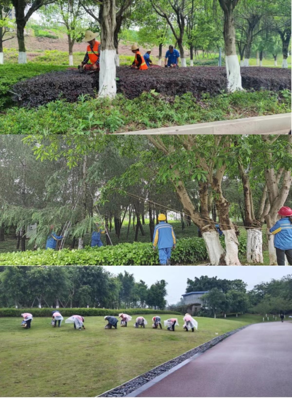 在绿化养护工作中,每一位员工都把坚韧不拔、吃苦耐劳的职业精神和实事求是、严谨扎实、细致踏实的工作态度发扬光大,切实的担负起了工作责任。每逢大风大雨等恶劣的环境天气时,现场管理员都会在第二天早上及时的出门巡查倒伏树木,报备园林局;工人上班后用吊车撑起倒伏树木,并且做好相关设施的维修工作,为人们的出行安全提供保障。绿化人员每天及时清理绿化带周围的垃圾和杂物,对树木定期进行修枝,为广大市民呈现干净舒适的绿化环境。