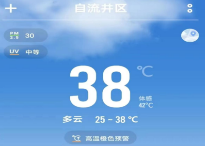 自贡市气象台2022年7月12日09时00分对2022年7月6日09时00分发布的高温橙色预警信号进行第6次确认:预计今天白天我市最高气温仍将维持在38℃以上,部分地方将达40℃以上。请继续做好高温防范应对工作。
