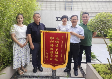 ? ? 2024年7月16日,沿滩区桂花村村委书记、第一书记将一面写有“采购苗木解难题 助村纾困好国企”的锦旗送到汇东生态公司,感谢公司在解决桂花村退林还耕、植物处置上的大力支持。