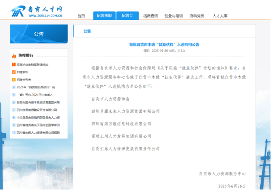 ? ? 此次入选首批自贡市本级“就业伙伴”,自贡汇东人力资源发展有限责任公司将以此为契机,进一步深化与政府、企业及社会各界的合作,持续优化就业服务体系,为自贡地区创造更多就业机会,助力实现高质量充分就业。